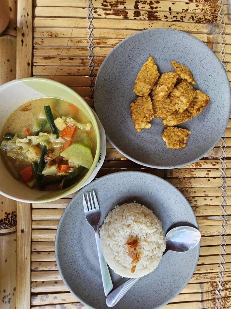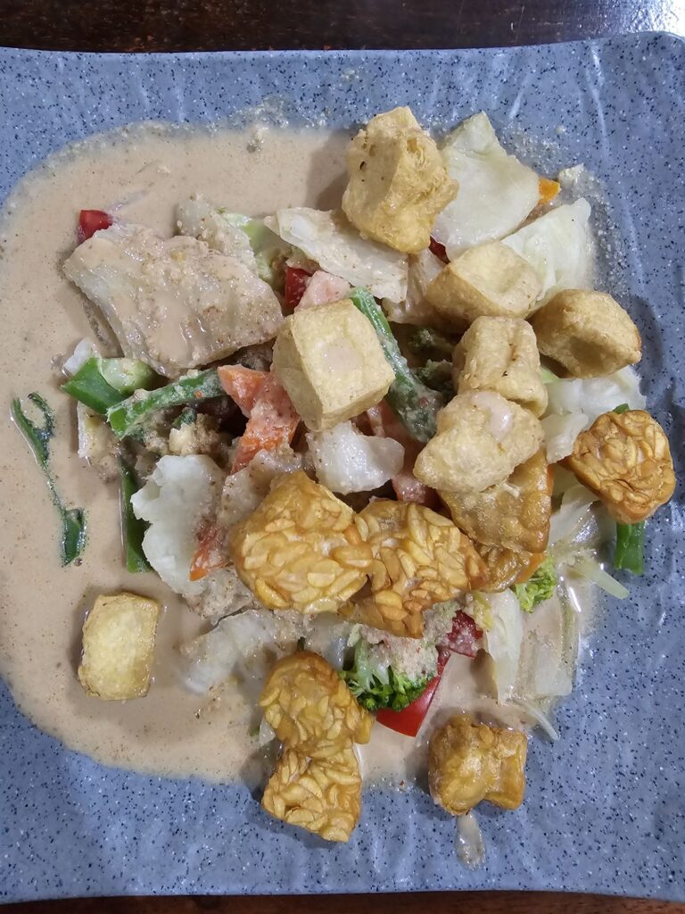 Je suis végétarienne et l’Indonésie est un paradis ! Tofu, haricots, légumes, fruits, cacahuètes, noix de coco ! Tout ce qu’il faut pour une nourriture équilibrée !